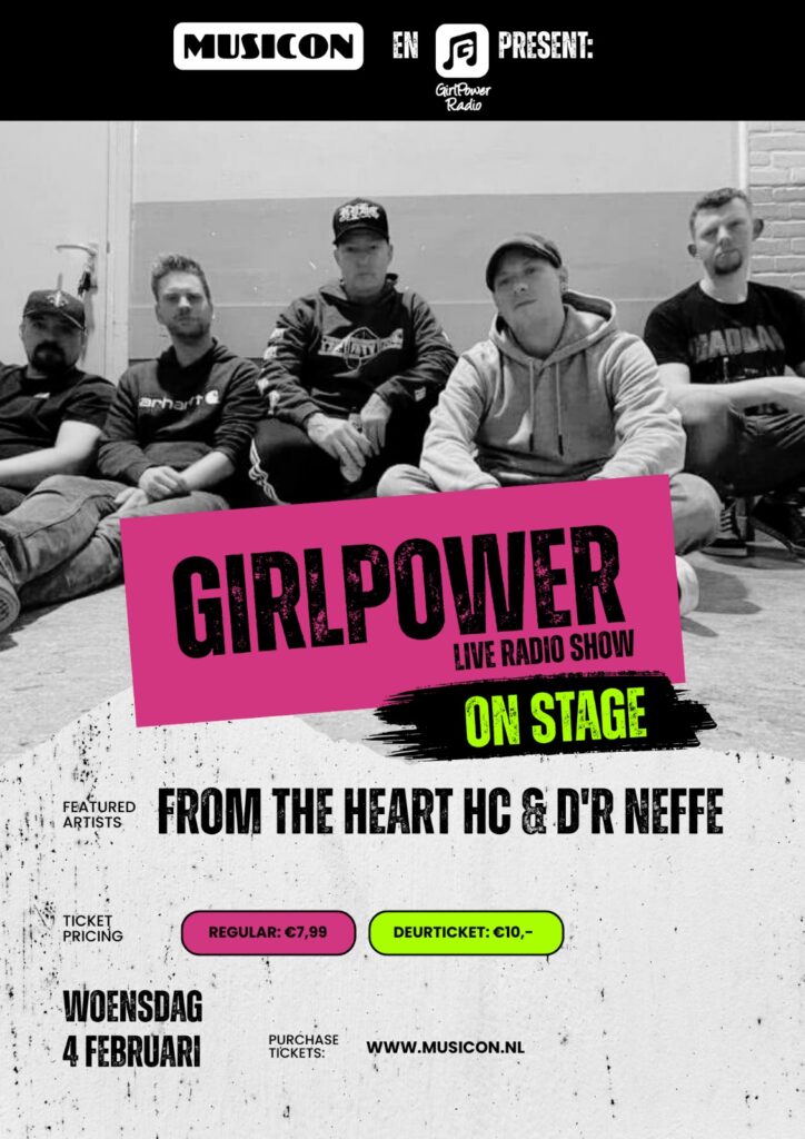 Op woensdag 4 februari knalt GirlPower on Stage live uit Musicon met een avond die volledig in het teken staat van energie, mosh pits en pure hardcore/punk power. Twee bands, één missie: alles geven op het podium.