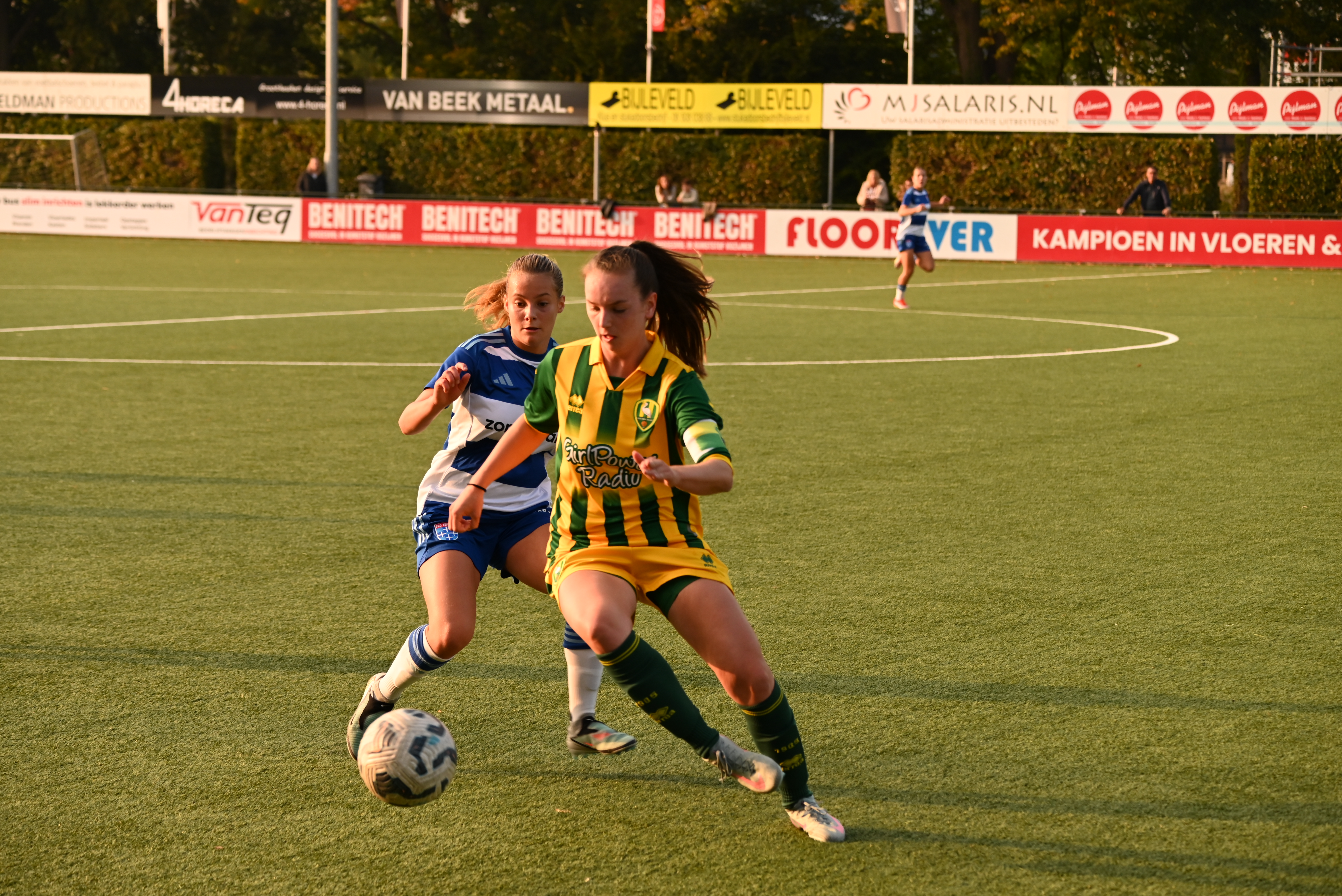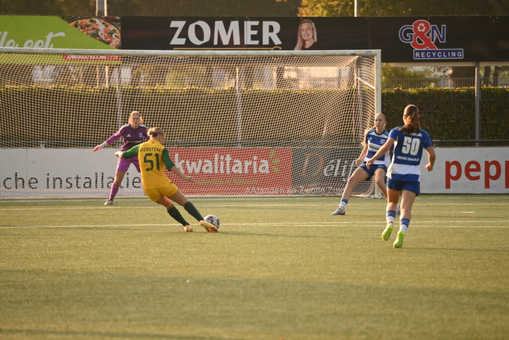 Ondanks een goede wedstrijd moesten de meiden onder 17 van ADO Den Haag uiteindelijk genoegen nemen met een nederlaag van 3-2 bij de jongens onder 15 van Monster. Halverwege was de stand 1-1. Na de thee maakte Monster van onzorgvuldig verdedigen en een uitblijvend fluitsignaal voor buitenspel gebruik om naar 3-1 uit te lopen. Een slotoffensief van de meiden leverde niet meer op dan een rode kaart voor een speler van Monster na een grove overtreding op Julia Stemvers.