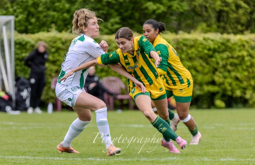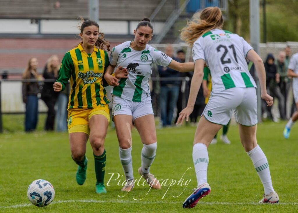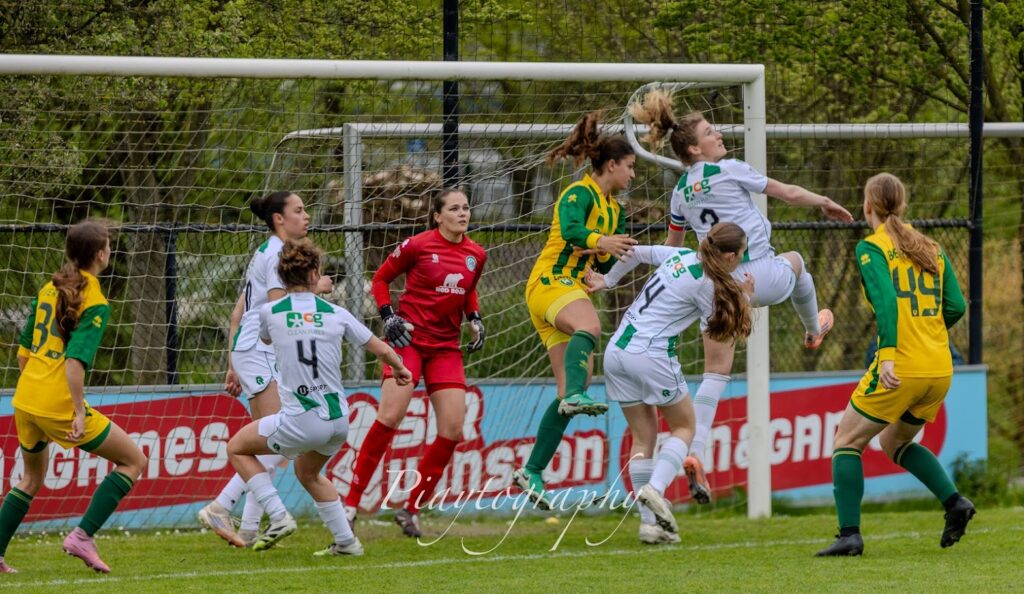Een dag later in zonnig Kijkduin waren de bordjes verhangen. In een drieluik bij Die Haghe bleef ADO Den Haag eerst de meiden van Sparta de baas door een voltreffer van gastspeler Abbey. Vervolgens werd FC Twente voor de zoveelste keer dit seizoen aan de zegekar gehangen. Catoo Janssen, Zeynep Esikli (tweemaal) en Sara Snoek schoten hun team naar 4-0.zet uit een hoekschop van Catoo Janssen werd op het laatste moment geblokt.