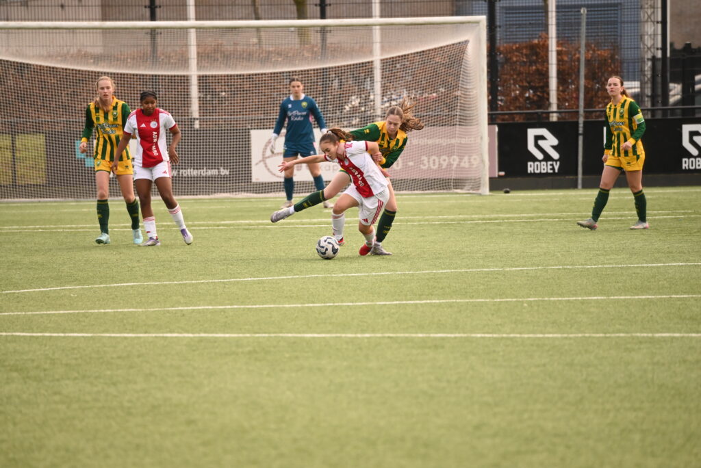 In een sterk gespeeld duel leek Jong ADO Den Haag Vrouwen zaterdag op weg naar een zege tegen Ajax. Twee minuten voor tijd ging de zwaarbevochten voorsprong toch nog verloren. De meiden onder 17 gaven een verdiend punt nog uit handen.